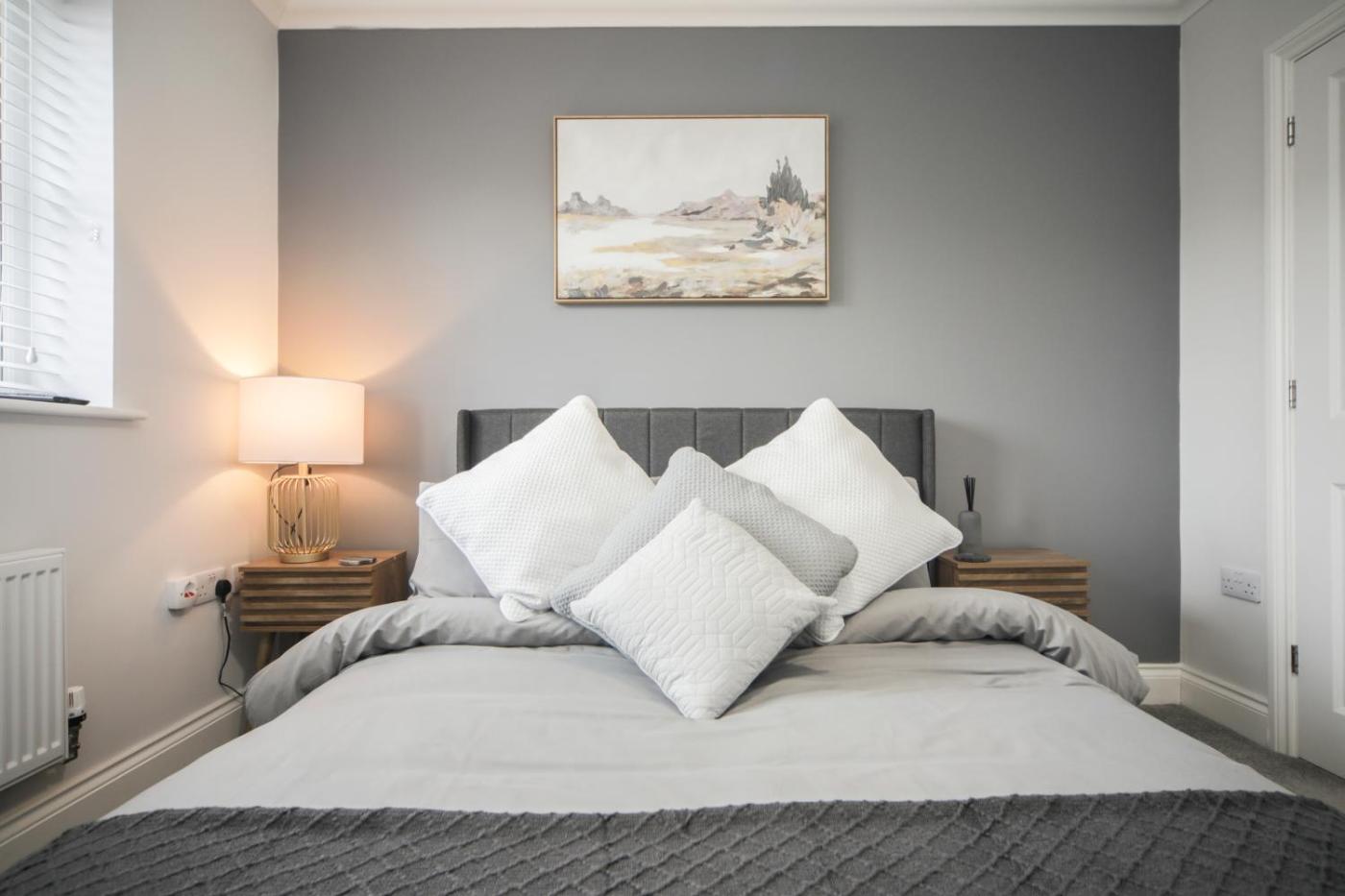 Three-Bedroom House. Boasting a private entrance, this holiday home comes with 1 living room, 3 separate bedrooms and 3 bathrooms with a bath and a shower. Guests can make meals in the kitchen that features a stovetop, a refrigerator, a dishwasher and kitchenware. The holiday home features a washing machine, a tea and coffee maker, a seating area, a flat-screen TV with streaming services, as well as garden views. The unit has 3 beds.
