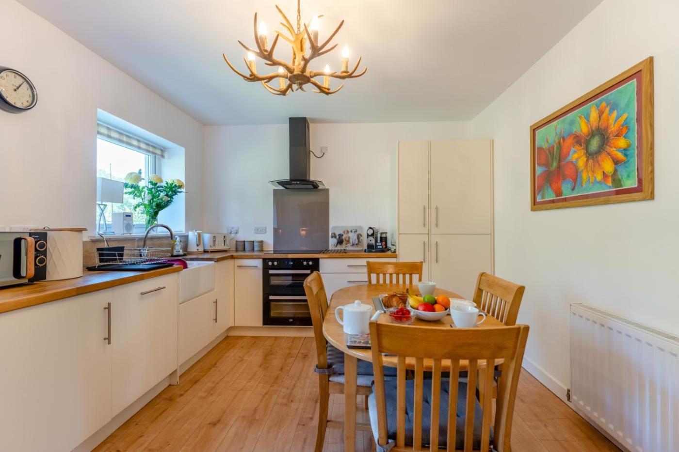 Three-Bedroom House. This holiday homes special feature is the fireplace. This holiday home features a private bathroom, and a high chair for children. In the fully equipped kitchen, guests will find a dishwasher, kitchenware, an oven and a microwave. The holiday home provides a washing machine, a private entrance, tumble dryer, a TV, as well as garden views.