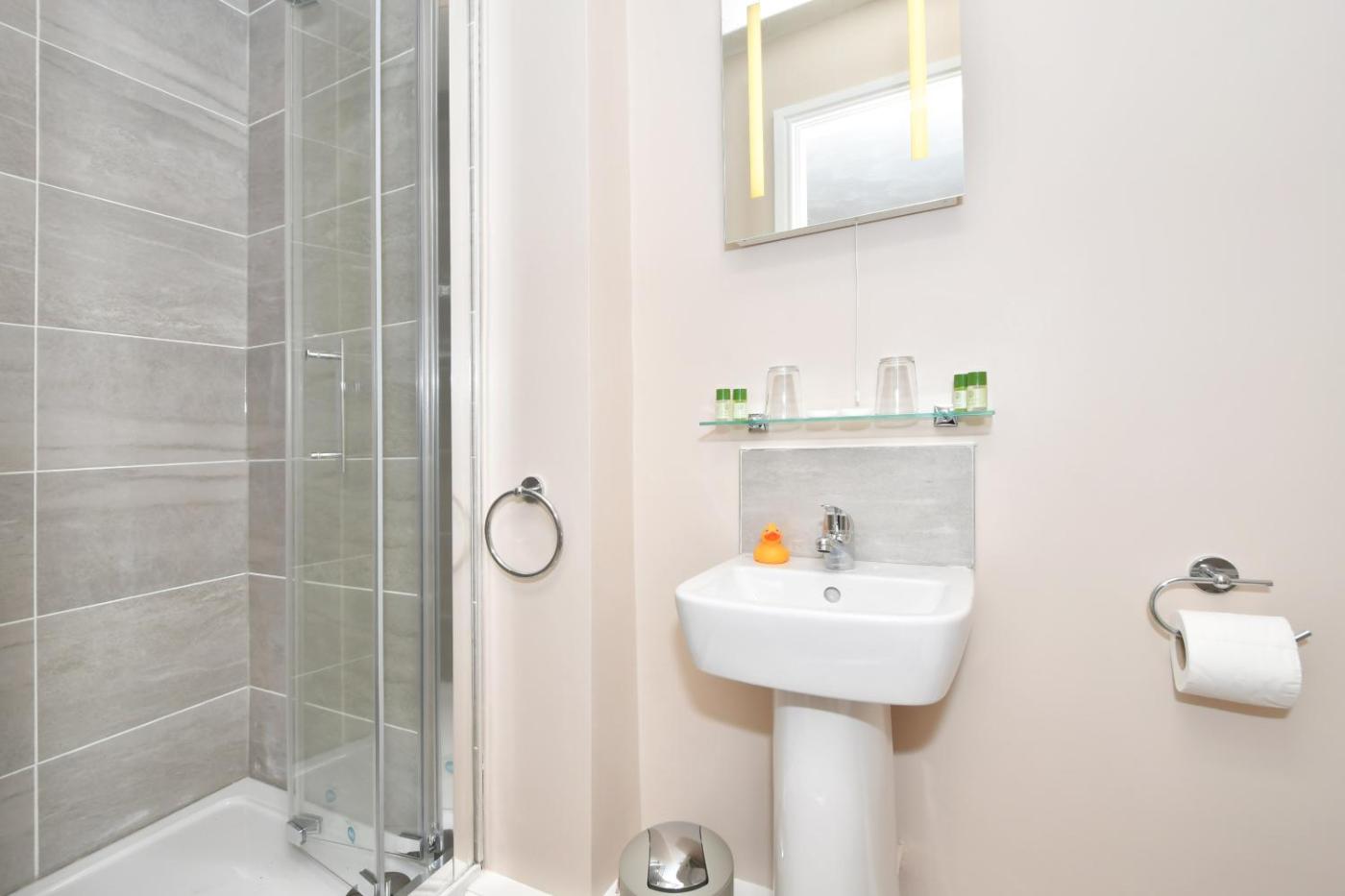 Deluxe Family Room. Featuring free toiletries, this family room includes a private bathroom with a walk-in shower and a hairdryer. The family room features a wardrobe, an electric kettle, a carpeted floor, heating, as well as a flat-screen TV with streaming services. The unit has 1 bed. ;