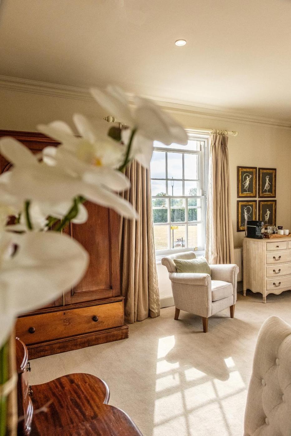 Deluxe Suite. This suite has a separate lounge with a large sofa and an antique coffee table, perfect to wind back and relax during your stay. The light and airy bedroom has a beautiful view of the village green, a king sized bed and a spacious en-suite featuring an antique bath and overhead shower, washbasin and heated towel rail. The suite is equipped with a flat-screen TV, teacoffee making facilities, high-speed Wi-Fi and Bramley bath and body products. ;