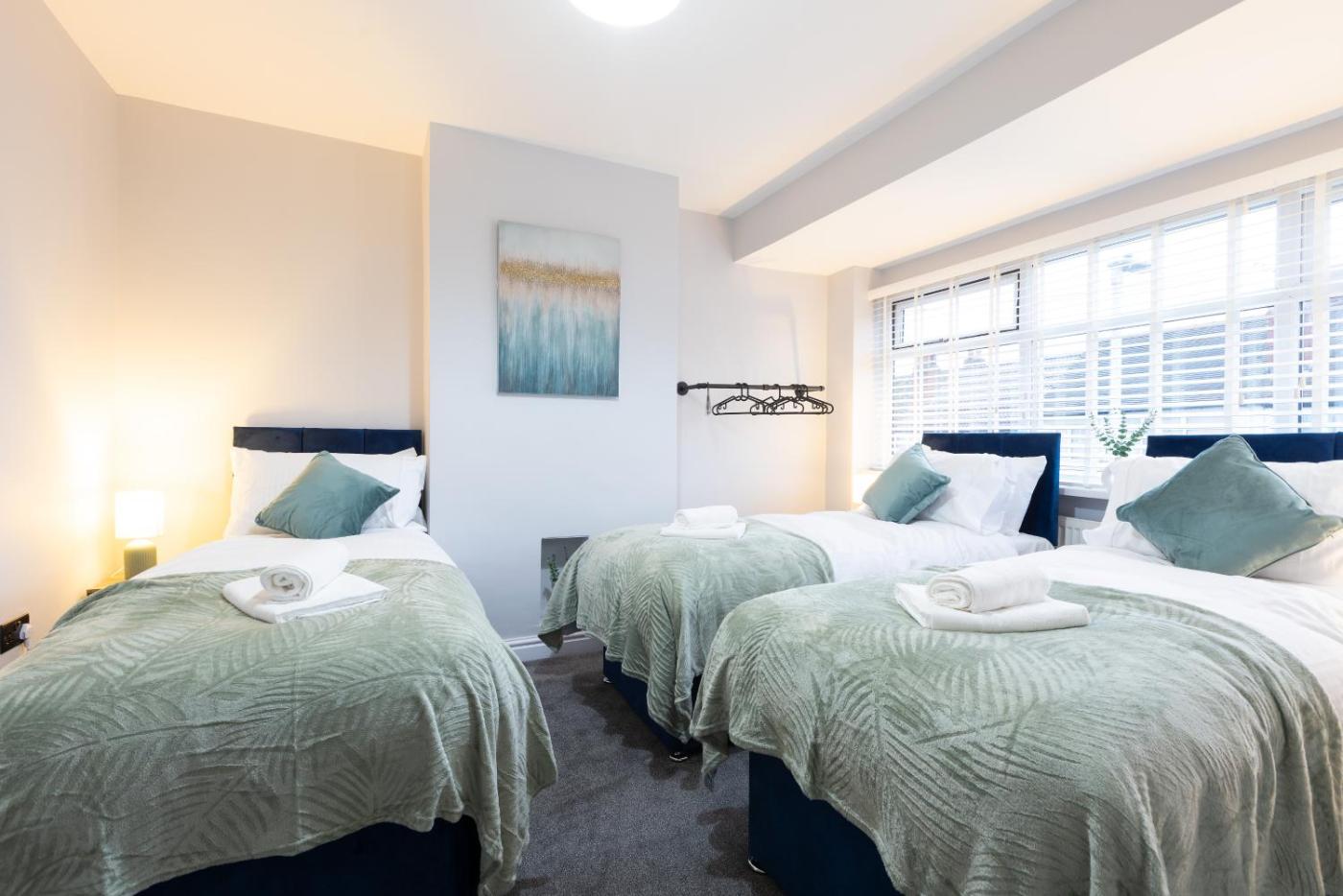 Offering a garden and garden view, Spacious 4BR Sleeps 10 30OFF for Contractors is situated in Roundhay, 3.5 km from O2 Academy Leeds and 4 km from Leeds Town Hall. Both free WiFi and parking on-site are available at the apartment free of charge. The property is non-smoking and is3.3 km from First Direct Arena.