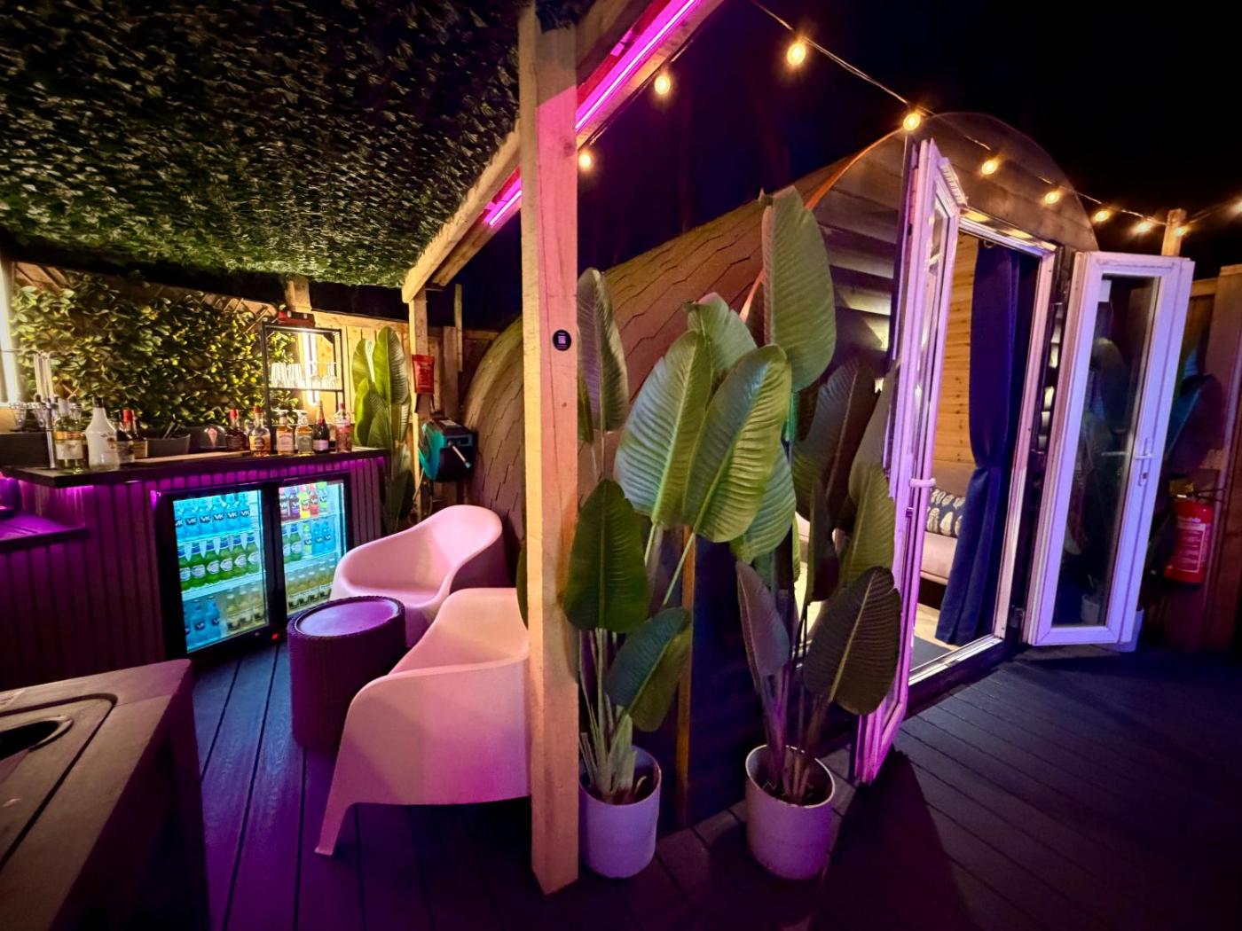 The Hideout β Boutique Glamping Suite. This suites standout features are the hot tub and sauna. This suite is comprised of 1 living room, 1 separate bedroom and 1 bathroom with a walk-in shower and free toiletries. Featuring a terrace with garden views, this suite also offers a private entrance and a flat-screen TV with streaming services. The unit offers 2 beds. ;