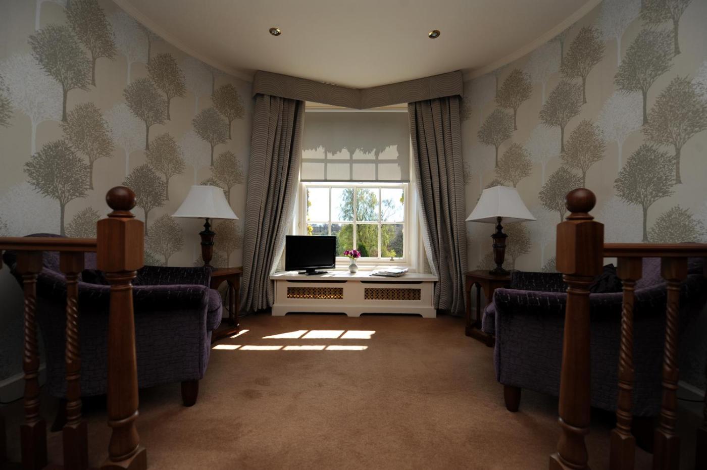 Turret Room. Traditionally furnished and beautifully decorated in cream shades or bold colours. These spacious Junior Suites boast a separate seating area in the houses turret. Include a modern bathroom with a power shower, while some feature their own balcony or a four-poster bed. ;