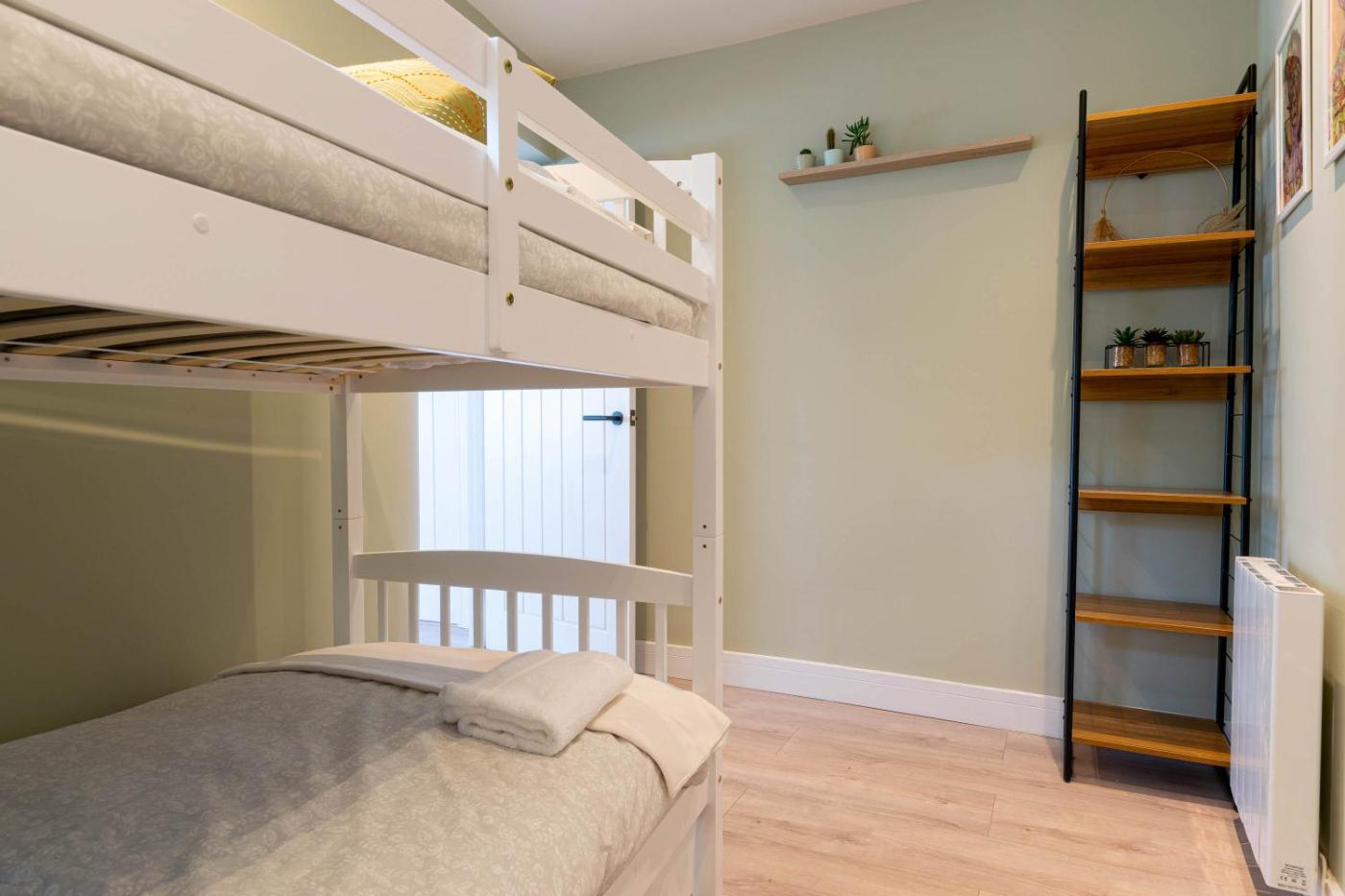 Two-Bedroom House. Boasting a private entrance, this holiday home comes with 1 living room, 2 separate bedrooms and 2 bathrooms with a walk-in shower and a bath. Guests can make meals in the kitchen that features a stovetop, a refrigerator, a dishwasher and an oven. This wheelchair accessible holiday home has a washing machine, a seating area with a flat-screen TV and a roll-in shower. The unit has 3 beds.