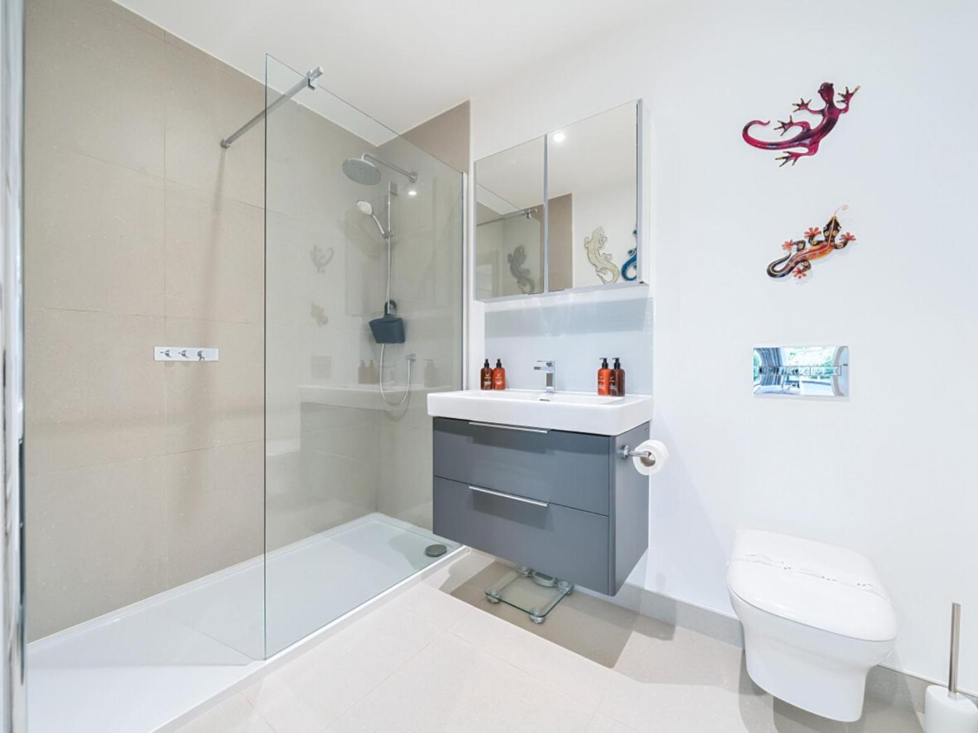 Two-Bedroom Apartment. This spacious apartment comprises 1 living room, 2 separate bedrooms and 2 bathrooms with a walk-in shower and free toiletries. In the well-equipped kitchen, guests will find a stovetop, a refrigerator, a dishwasher and kitchenware. Among the room amenities are a washing machine, a private entrance, a tea and coffee maker as well as a patio and garden views. The unit offers 2 beds.